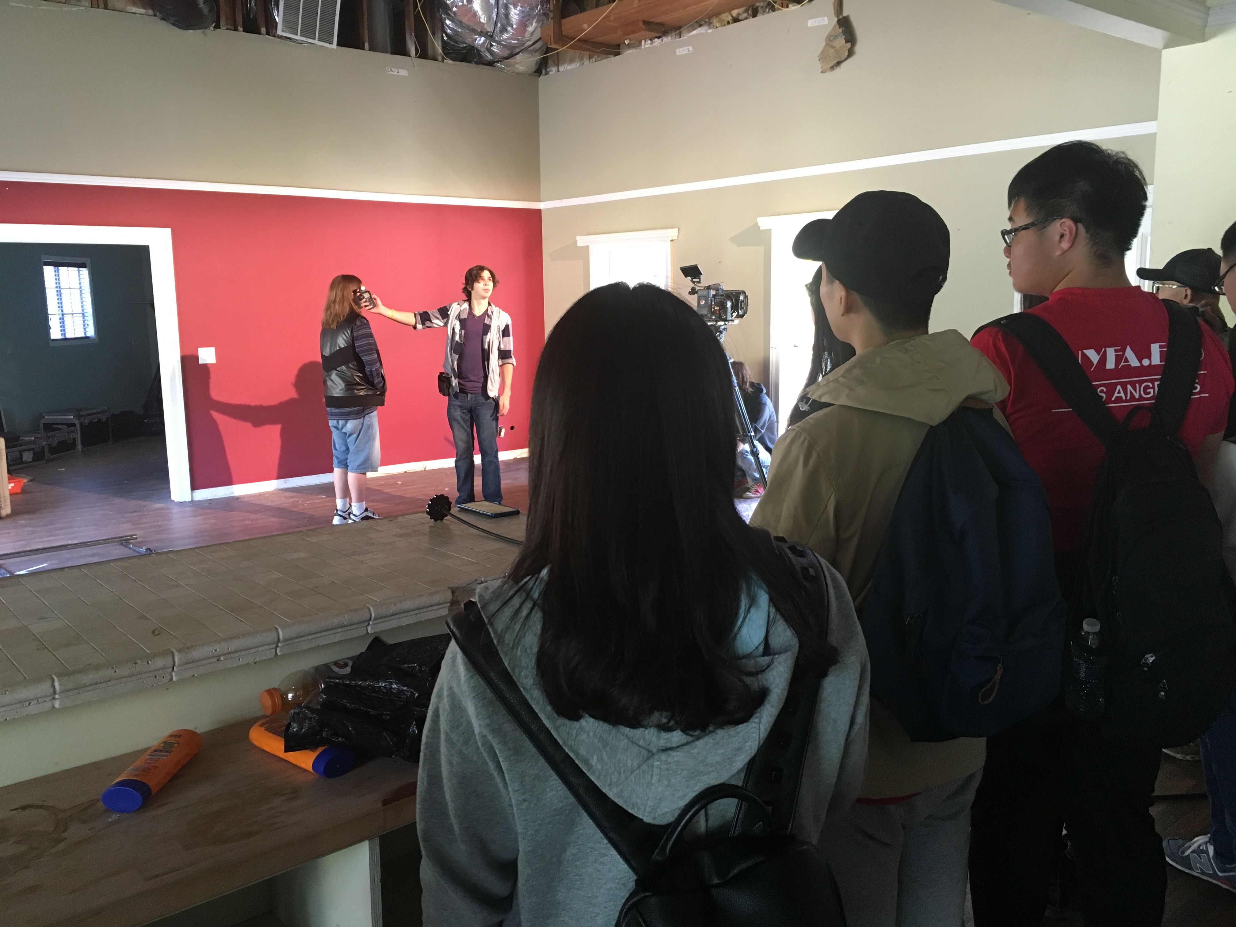 (国际部同学参观纽约电影学院洛杉矶校区主教学楼内部)