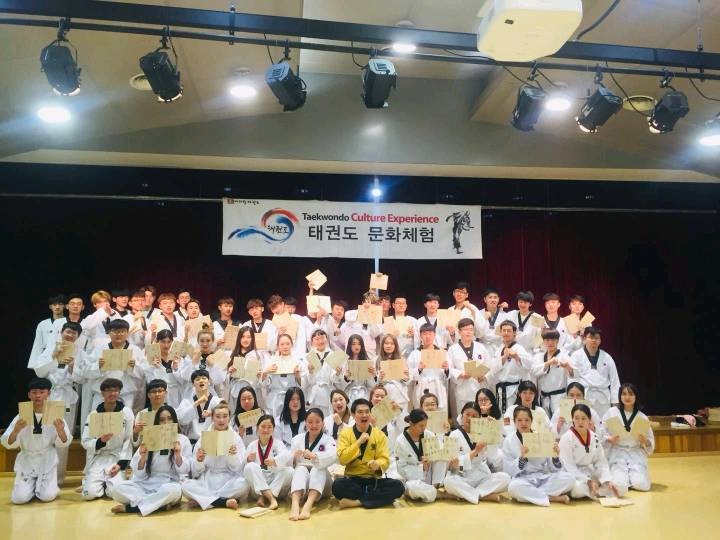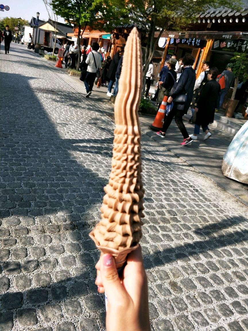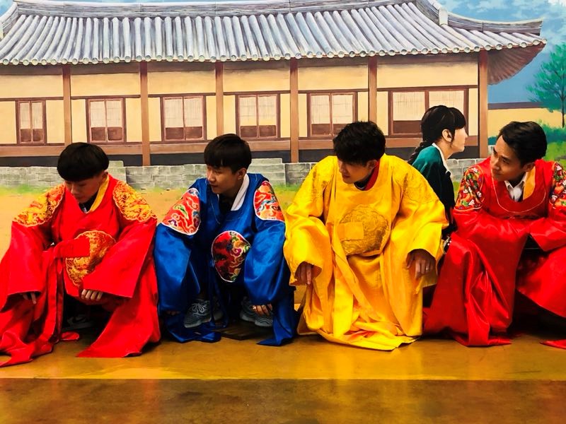 于是开始了第一项行程——汗蒸,洗去飞行的倦意,好好休息恢复元气,为接下来的快乐时光做好充足准备。汗蒸之后,大家乘坐大巴沿路欣赏着风景,很快便来到了全州,那么就不得不提著名的全州韩屋村。参观韩国文化保存最完整的韩屋村也是同学们的众多行程之一。街道上都是身穿韩服的游客们,仿佛穿越回古时,使人流连忘返。参观完韩屋村之后大家品尝了著名的全州拌饭和豆芽汤饭。晚上入住全州酒店,为第二天启程去全州大学做准备。