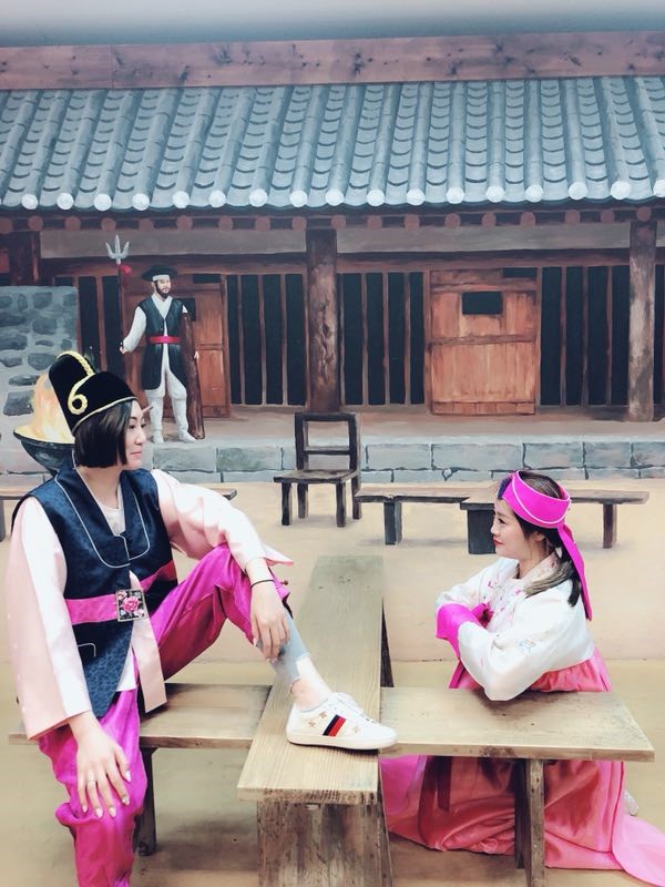 下午大家来到海苔博物馆,参观紫菜的制作过程、品尝各种口味的海苔,并且亲手制作了泡菜,而后同学们身穿韩服合影。