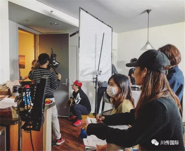 第四,拍摄方面,在国内拍片子(学生作品)只要准备好剧本,选合适的演员,就可以开拍了。但在美国就复杂了,比如拍摄地点,在美国不可以随便拍摄,必须要申请许可证,有的地域甚至需要周围方圆两三百英尺的居民签名才能去Office申请许可证;还有就是找演员,需要提前看他们的戏,预约房间,给演员们约时间来试戏,还要签release;再就是筹备设备,什么样的机器什么样的灯什么样的声音设备,都要去租,租东西也需要证明,需要去签。在川传仪器设备都有专门的设备老师管理准备,节约了很多租借设备的时间。我记得去年我自己的片子提前两个月就开始准备了,拍摄前,纸质的各种证明、拍摄计划、预算等等加起来一共126页A4纸。