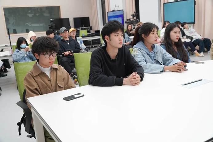 在现场,同学们通过技术先进的智慧教室进行观看,了解到了多元的电影行业技术理论及含义,也感受到了大师电影功底的深厚与电影知识独到的理解,期间举出的许多例子令我们印象深刻,同学们也受益良多。