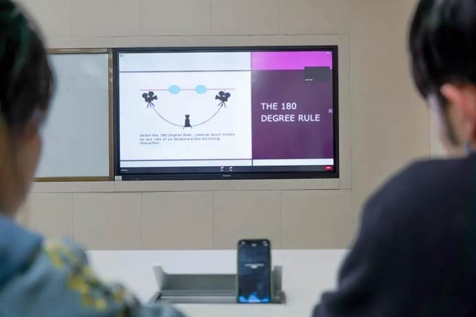大师讲堂生动有趣,同学们认真听讲,时不时互相讨论。课堂采用的是全英文教学,举例丰富,同学们热情高涨。相信此次讲座一定能够提升同学们对于影视摄影基础的理解以及剧本创作的能力。