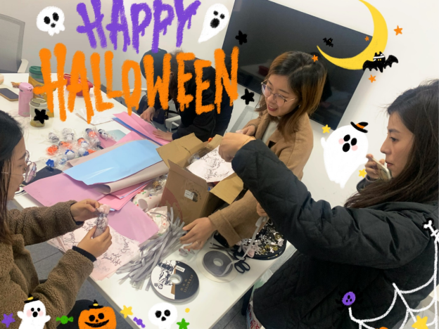 活动当天一大早,老师们也早早地来到会场做准备。整个场地充满了万圣节的气氛。