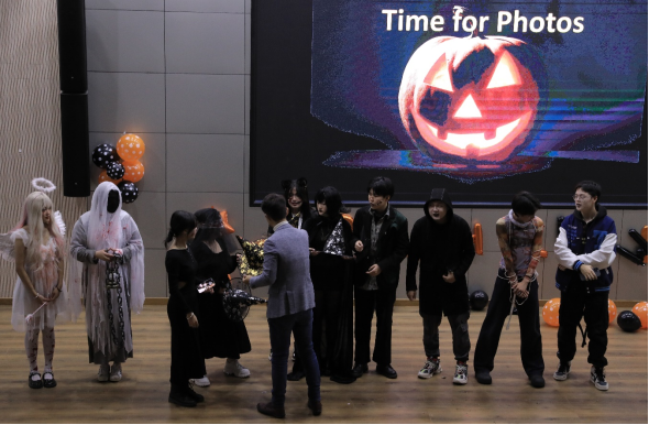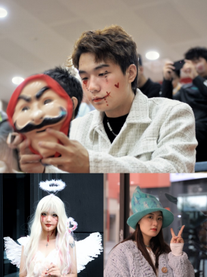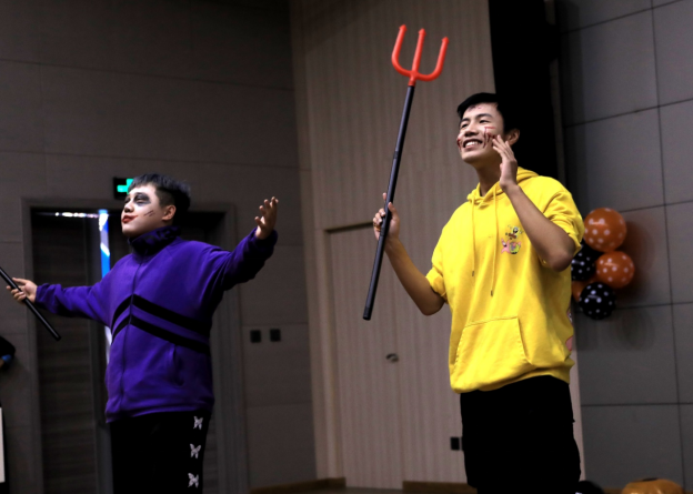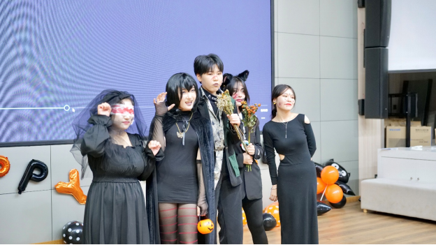 暖场游戏后,万圣节时装秀正式开始,各位同学的万圣装扮各有千秋,有吸血鬼造型、动漫造型等等,甚至有同学亲手制作时装,充分发挥创造和想象力。
