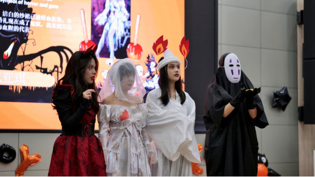 2021年11月1日,国际部英语方向所有师生一起在国家级超高清影视基地庆举办了“万圣节换装Show”英语文化主题活动。国际部蔡钰杰部长、董佳书记,国际部全体老师、英语方向全体同学共同参与本活动。