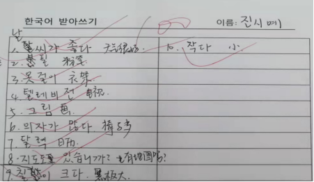 她用实力打破世俗对长得好看的女生的偏见,用颜值打破世俗对学霸的固有印象。她只要站在那里,就是青春飞扬,闪闪发光的模样。良好的语言天赋加上孜孜不倦的努力,再添上一些对韩语的兴趣,就是扎实的基本功和优越的语言能力。于是这学期以来的每一次听写光荣榜上,都能看到诗睿的身影。哪怕因为疫情隔离,也坚持跟好每一堂网课,保质保量地完成每项任务。隔离期间的听写照样拿到了满分。