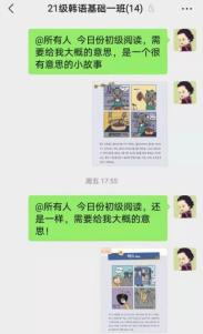 白老师负责的2021级专本韩语基础2班和国本1班同学们的阅读提升训练记录: