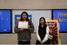 蔡院长为最佳展示奖得主田莹、陈晧仪、吕佳薇颁奖