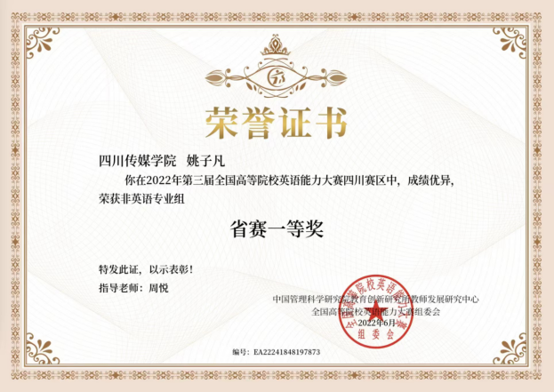 姚子凡 四川省一等奖(指导老师周悦)