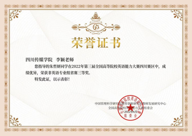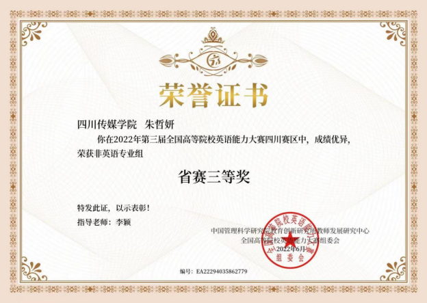 朱哲妍 四川省三等奖(指导老师李颖)