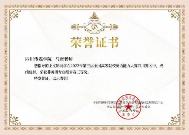 全国高等院校英语能力竞赛喜报
