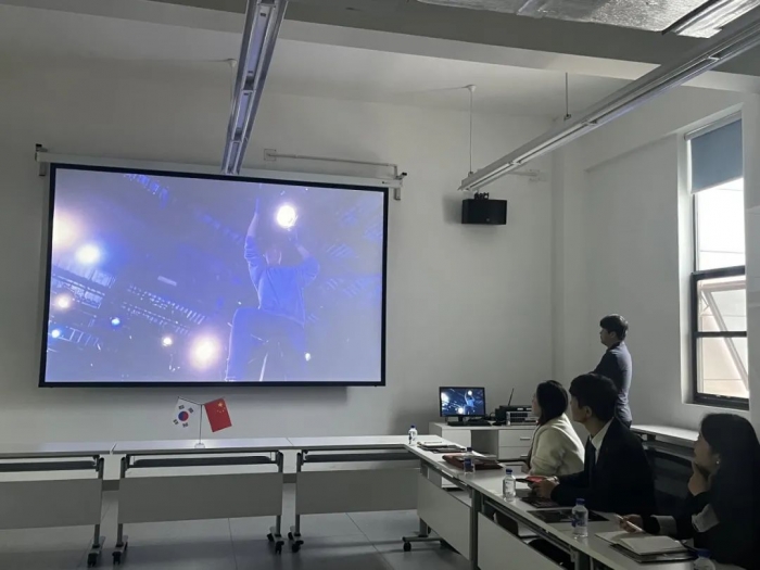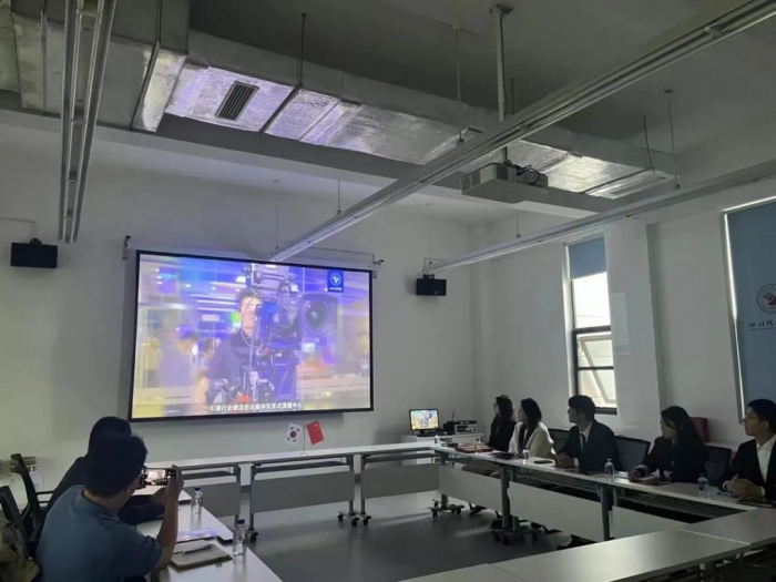 首先,蔡钰杰院长对韩国映像大学国际交流处主任一行的到来表示热烈欢迎。双方随后在座谈会中互相介绍了学校概况,共同观看了学校宣传片,并对两校之间的国际合作项目、教育文化交流、师生互访等方面进行了交流探讨。