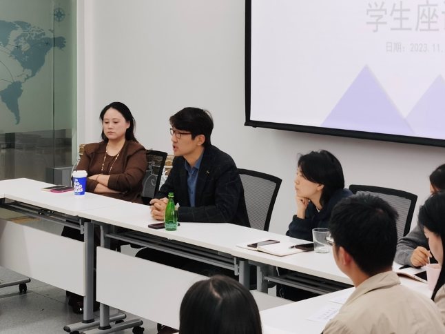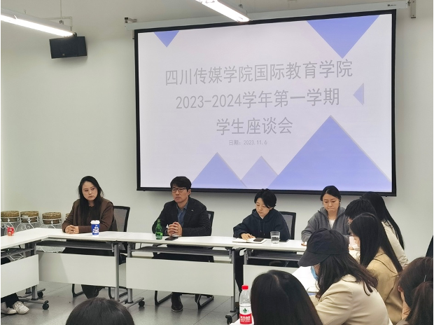 为了促进学校教学质量提高,增进师生之间的沟通,2023 年 11 月 6 日,国际教育学院举行了 2023-2024 学年第一学期期中学生代表座谈会。这次座谈会邀请了学院领导、各教研室主任、行政老师、辅导员老师、教师代表以及各班学生代表参与。座谈会上,学生们积极提出了对学校、学院和教师教学工作的意见和建议,使得学校能够客观准确地了解本学期教学工作的运行情况,进一步提高人才培养质量。
