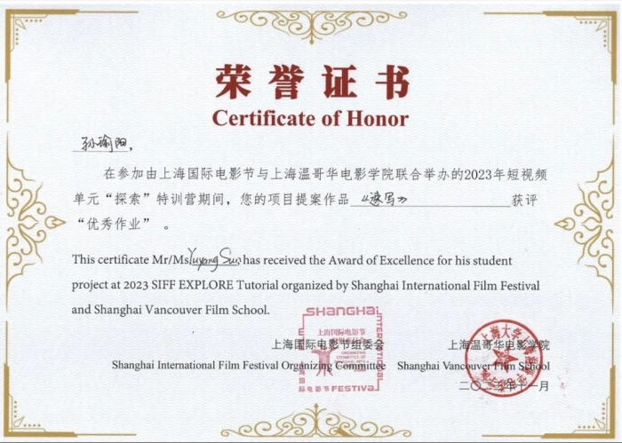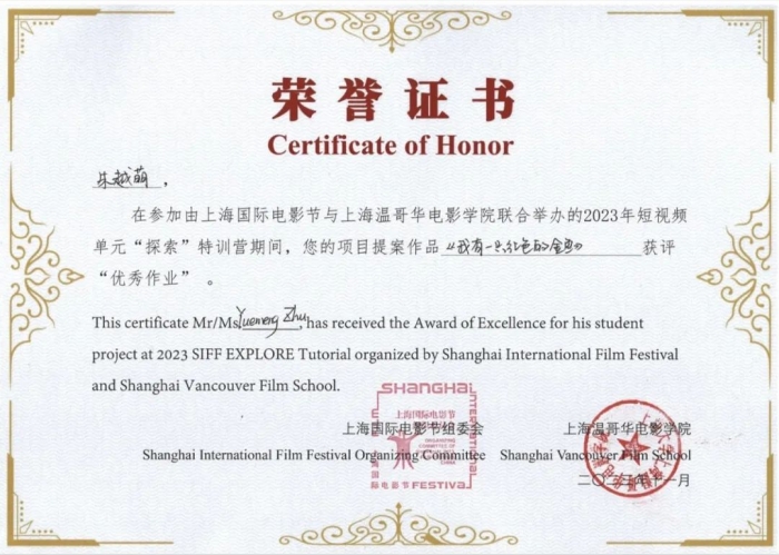 朱越萌:“电影创作的魅力在我眼中是可以去向许多人讲述我们心中的故事,在创作中我们可以作为导演或者编剧通过想象去塑造不同人物的命运。即使我们与观看我们影片的观众并不相识,但影片使我们与他们紧紧相连。在上海国际电影节短视频探索特训营四天的学习中,我们更好的理解了什么是影像叙事、什么是青年电影、当下热门微短剧量变到质变的探索,我们对影像有了新的认知。尽管追寻光影的道路依然很长,但我们未来在影视之路上,探索的步伐不会停止。”