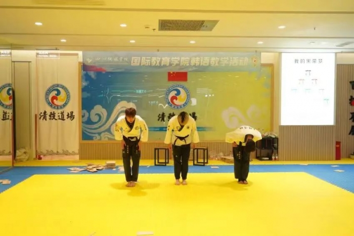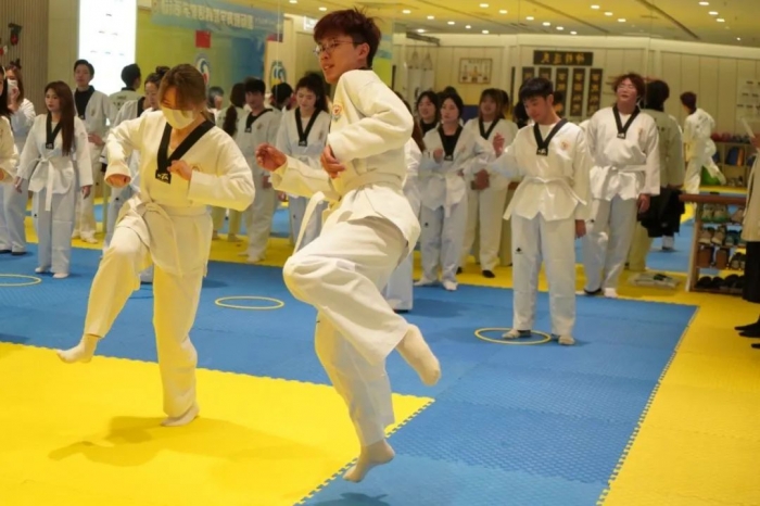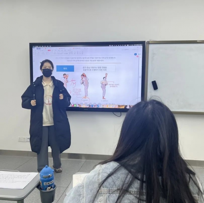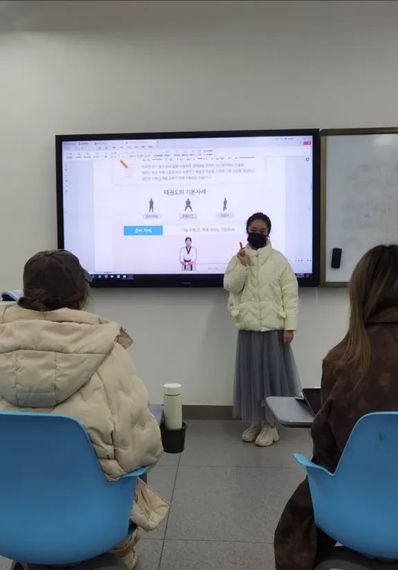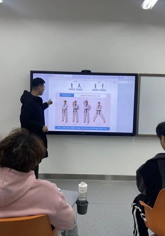 教学活动开展之前,韩语教研室的各位老师向同学们讲授了与跆拳道运动相关的语言知识,帮助增进对于运动美、身体美的感知力和理解力,引领同学们在运动中提高审美、享受乐趣。