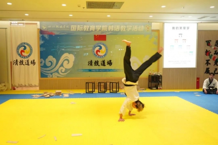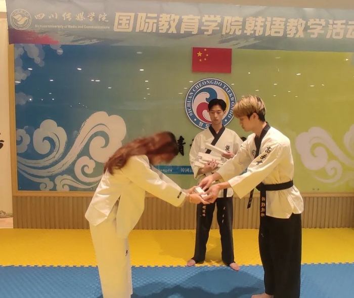 12月5日,国际教育学院韩语教研室结合语言课程教学大纲,举办了一场独特而富有创意的跆拳道体验教学活动。这不仅是一场体育运动技能的学习,也是一堂生动形象的韩语拓展课,更是一次锻炼身心意志、融入体育精神的美育实践。