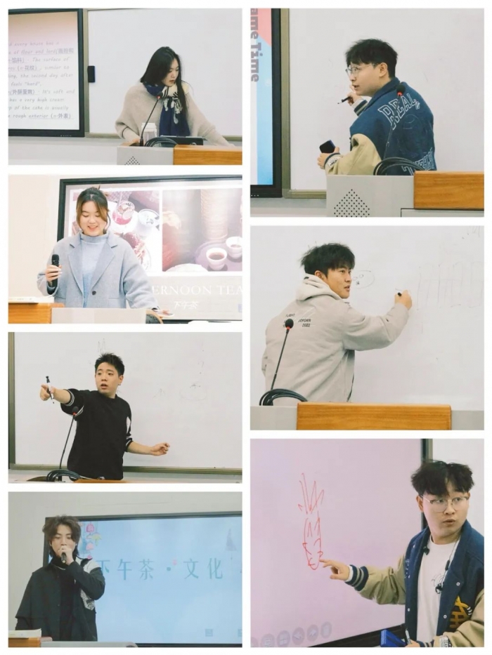 在同学们进行了文化分享之后,大家对于下午茶文化有了进一步的了解。接下来,老师们展示下午茶制作过程并讲授了相关食材的英文表达。