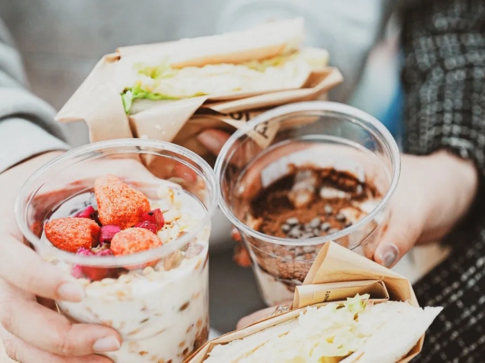 不同口味的酸奶杯: