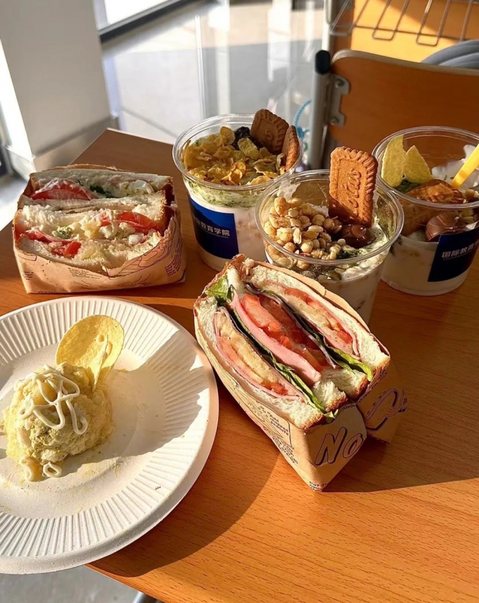 接下来,同学们分小组领取了食材、开始制作下午茶点。一共需要制作三样点心:土豆泥、三明治、酸奶杯。