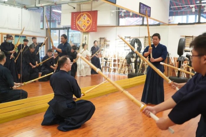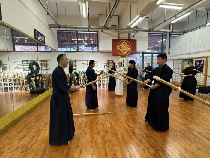 接着,李楠教练和姜俞安教练向学生们展示了一套完整的剑道招式,并详细讲授了如何正确握剑、踏步和出招以及基本的剑道动作和技巧等。