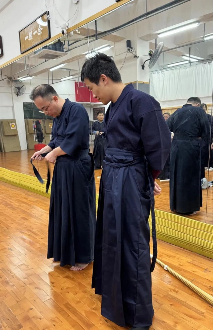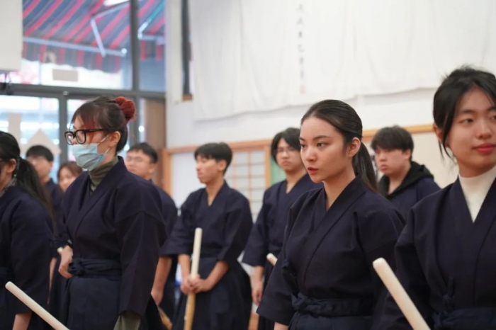 由于剑道与其他体育项目不同。剑道要求赤足进行练习,即便在寒冷的冬日也不例外。因此同学们在正式进入场馆前就已经感受到了不一样的文化,开始了“修行”的第一关。