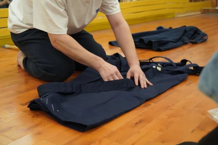由李楠教练进行剑道装备(剑道服以及护具)的展示,并示范了剑道服的正确穿法。
