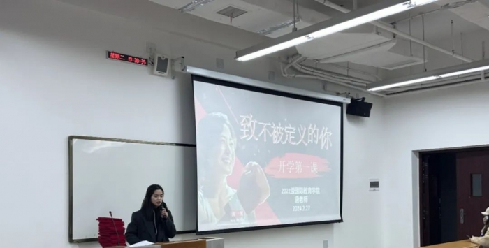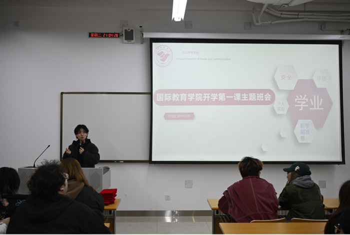沐浴春风,充满了新学期的希望,春风再起,吹响了新征程的号角,也带来了新学期的时光。为做好开学后学生的思想稳定、收心工作,确保开学后各项工作顺利进行,2月27日,国际教育学院组织各年级学生召开了2024年春季“开学第一课”主题班会活动,引导同学们以全新的面貌投入新学期的学习生活。