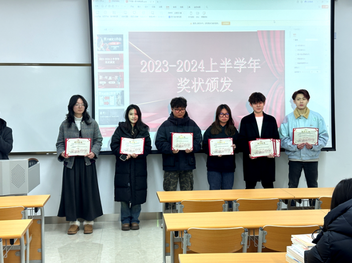 在班会中,唐思源老师以《热辣滚烫》中的女主角贾玲为例,鼓励学生在新学期要学会制定目标,勇于面对学习和生活的困境,克服困难。在新的一学期里珍惜时间,努力提高自己,不断拓宽视野。班会同时对去年在全国高等教育美育教学成果展评上取得奖项的同学进行颁奖,辅导员老师鼓励同学们在新的一学期向获奖同学学习,树立学期目标,积极参与各类专业比赛,努力提升自己的专业技能。