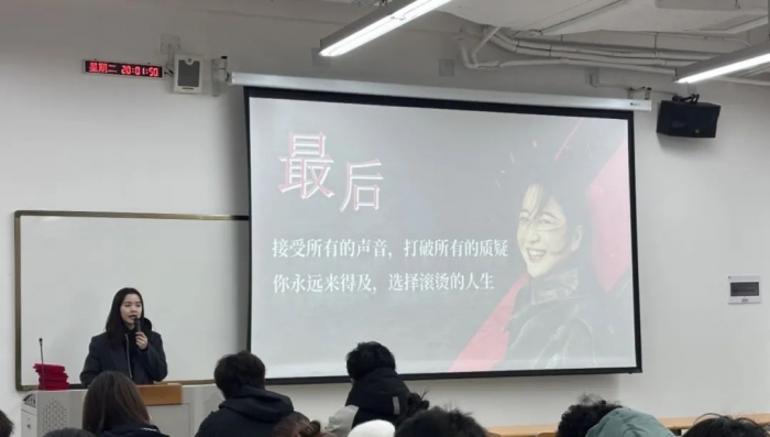 2022级辅导员唐思源老师结合春节热映档电影《热辣滚烫》以"致不被定义的你"为主题带领同学在新的一学期里学会定目标,撕标签,养习惯,引导学生在新的学期里找到自己的学习目标和前进动力。