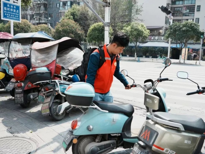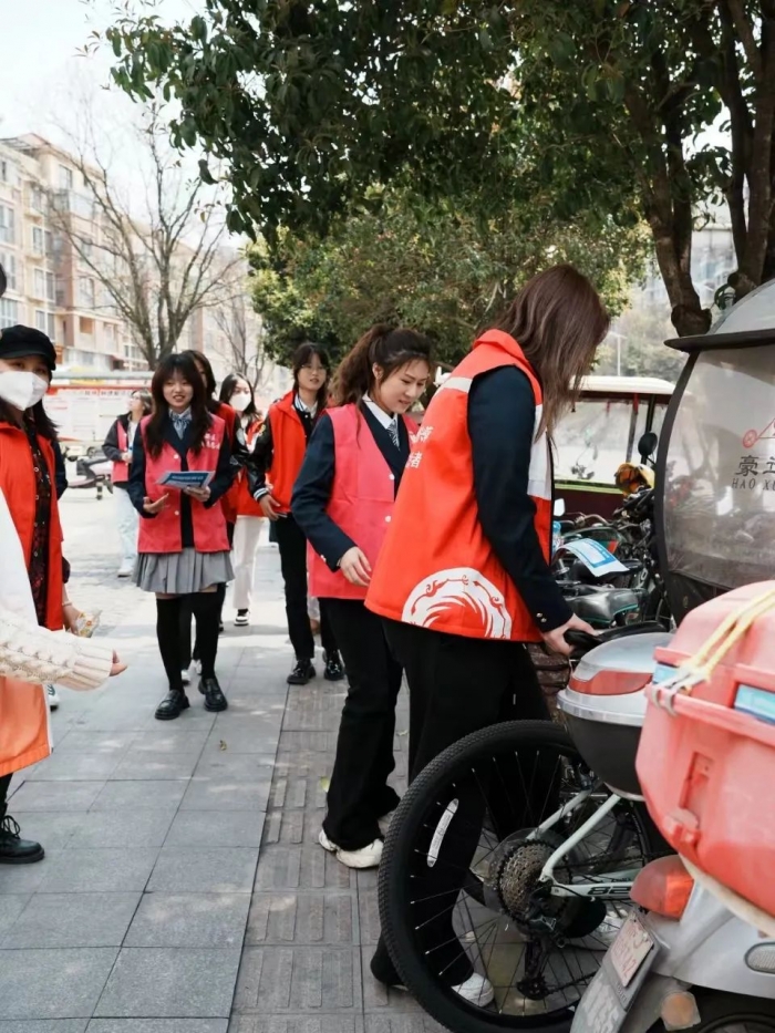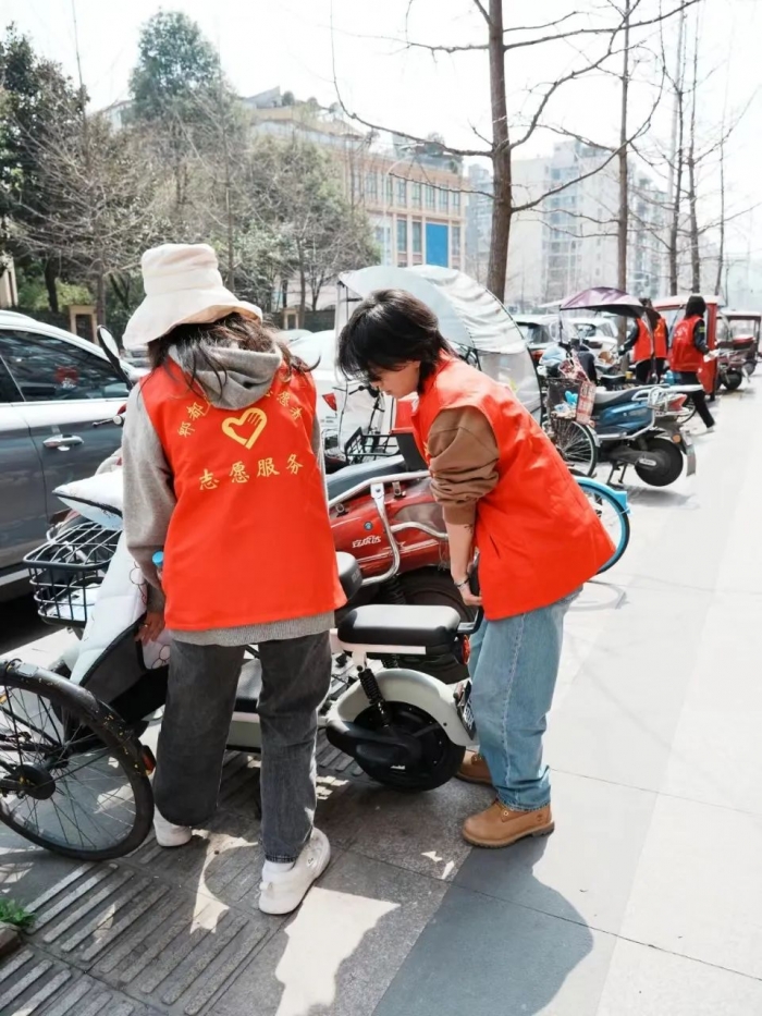 在教师支部书记的精心组织下,一支由党员教师和学生们组成的志愿者队伍应运而生。他们带着满腔的热情和坚定的信念,来到了郫都区郫筒街道菠萝社区。这里的盲道由于长时间未得到有效清理,堆积了不少杂物和垃圾,给视力障碍者的出行带来了极大的不便。志愿者们迅速行动起来,他们手持扫帚、簸箕,认真清理着盲道上的每一个角落,不放过任何一片纸屑、一个烟头。他们的身影在阳光下显得格外耀眼,成为了社区里一道美丽的风景线。