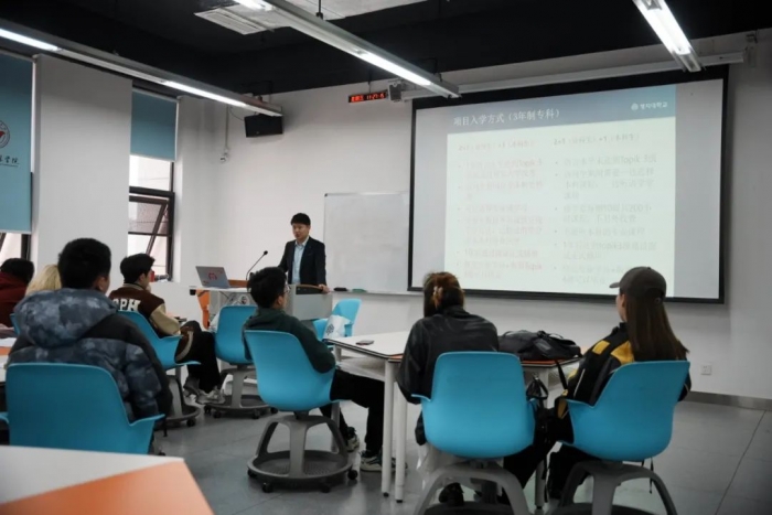 会议伊始,明知大学毕老师通过学校宣传片向同学们展示了明知大学的学习及生活教育环境,然后详细介绍了明知大学的办学情况、学校特色、国际化程度、专业设置、入学要求、奖学金政策、校园设施环境及膳食住宿等基本情况。最后答疑环节,同学们纷纷举手就专业学习、选课,毕业要求等积极提问,毕老师也给予了耐心、清晰的解答。