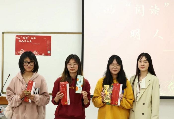 本次读书分享会特别邀请到图书馆的刘晓培老师、于洁老师,马克思主义学院的毛宁老师,国际教育学院的黄守杰老师、李黛钊老师、聂嘉老师一同担任评委嘉宾。经过精彩角逐,最终获得本次读书分享会一等奖的是朱越萌同学;获得二等奖的是涂欣悦和王琛两位同学,黄梦琦、徐睿琪、许伯砚和李文倩同学获得三等奖。