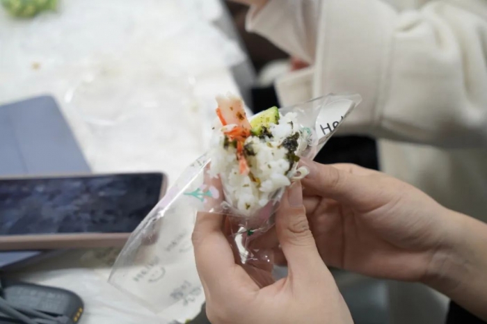 在活动中我们为参与者们准备了丰富的材料,从软糯的米饭到各式各样的配料以及精美的包装,应有尽有。在社团负责人的悉心指导下,同学们纷纷动手尝试制作了属于自己的饭团。通过亲手操作,大家不仅了解了饭团的基本制作流程,还体会到了其中所蕴含的日本传统饮食文化的变迁。