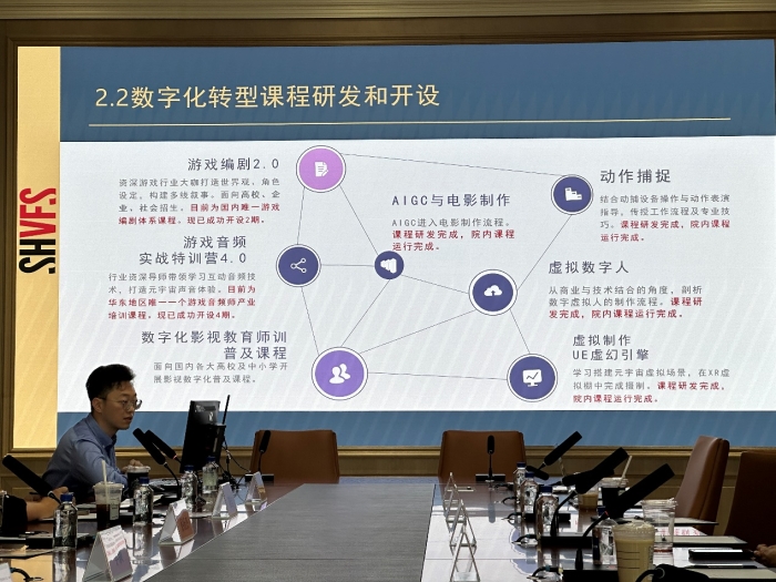 第二天的研讨会继续热度不减。来自Netflix的韩国VFX特效总监CHOI MINHO分享了人工智能时代电影特效数字化转型的思路与实践,引发了现场参会人员的强烈兴趣。知名导演郑威的专题讲座则探讨了XR Studio虚拟制作与AIGC融入影视制作教育的前沿话题。在自由讨论和专题研讨环节中,与会者们积极交流,共同探讨数字化转型的方案和策略。