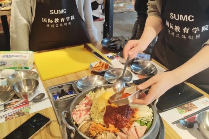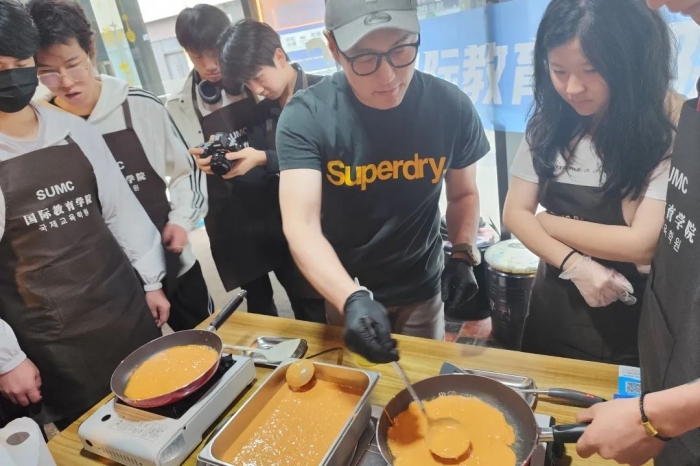 4月26日,国际教育学院韩语教研室结合本学期教学大纲中的语言实践教学要求,举办了“品美食,学韩语” 韩国饮食文化体验教学活动。