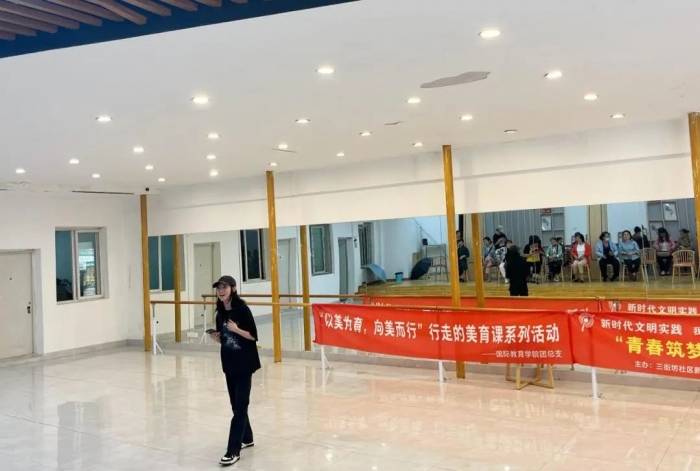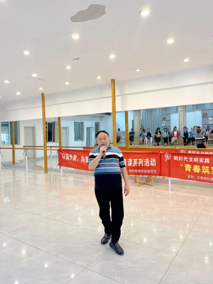 为了传递社会对老年人身心健康的关爱,进一步丰富他们的精神文化生活,引导广大青年走进基层融入社区,共建和谐家园、厚植爱国情怀、强化责任担当。5月10日,国际教育学院团总支组织部分学生开展了“行走的美育课”系列活动第三课,为社区老人们带来了一场温馨而精彩的慰问演出。
