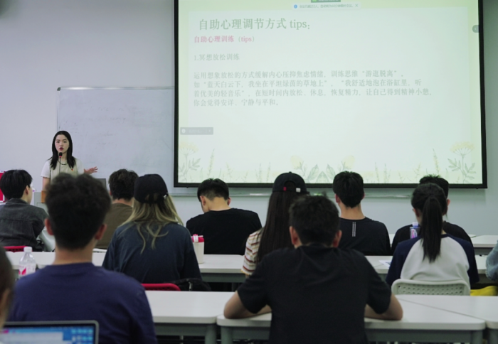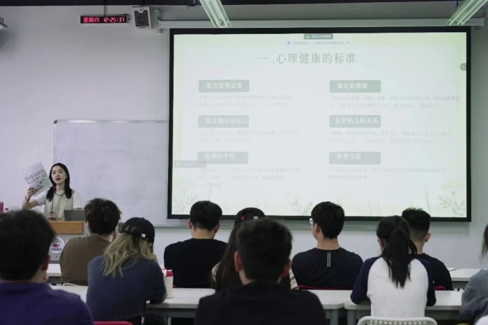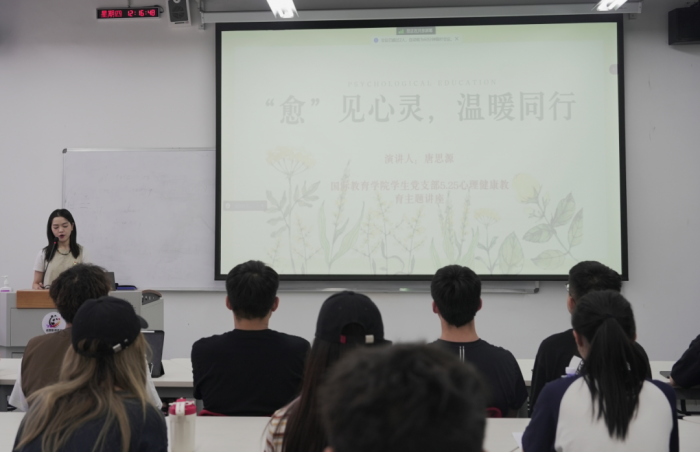 活动以讲座的形式展开,由国际教育学院学生党支部宣传委员唐思源老师作为主讲嘉宾,以其心理学背景和实践经验,为大家带来了一场深入浅出的心理健康讲座。唐老师从心理健康的定义着眼,强调了心理健康在个体成长和社会和谐中的重要作用。从对心理健康标准的介绍入手,邀请学生对照心理健康的标准对自身心理状态进行合理评估。