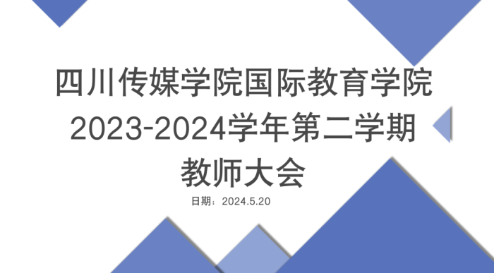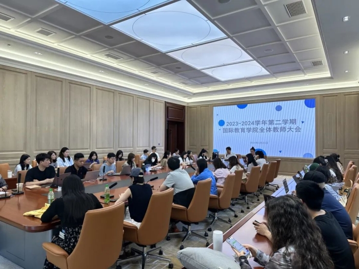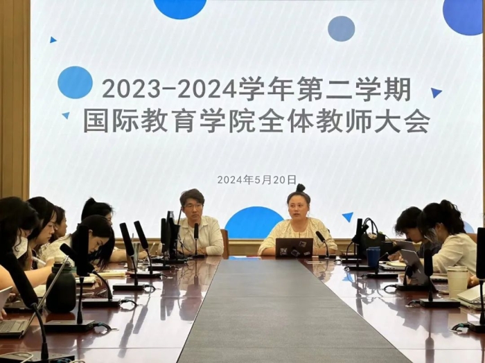 为保证教学工作的稳步推进,提高学院工作效率,促进教师之间的沟通。5月20日,国际教育学院举行了“2023-2024学年第二学期期中全体教师大会”。