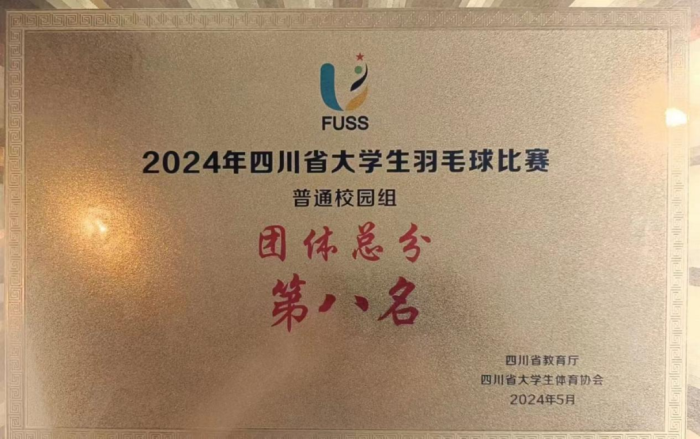 在青春的赛场上,每一滴汗水都铸就着荣耀与辉煌。5月22——5月24日由四川省教育厅主办,四川省大学生体育协会承办的2024年四川省大学生羽毛球比赛,在成都信息工程大学航空港校区体育馆圆满落幕。在这场汇聚了全省高校羽毛球精英的盛大赛事中,我院学生周鑫同学所在的四川传媒学院育羽毛球代表队荣获普通校园组团体总分第八名的佳绩,为学院赢得了荣誉。