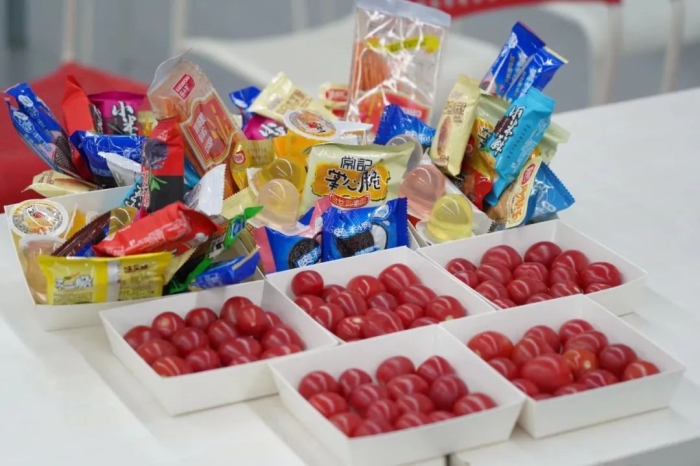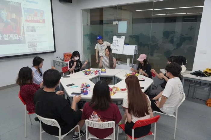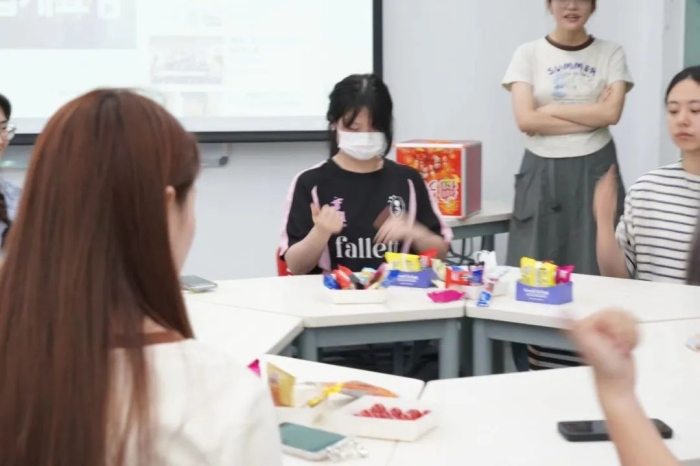 活动现场,韩国语学习交流社团为大家准备了丰富的小零食和水果。社长为同学们介绍趣味韩语游戏规则。同学们触类旁通、跃跃欲试,现场氛围热烈。