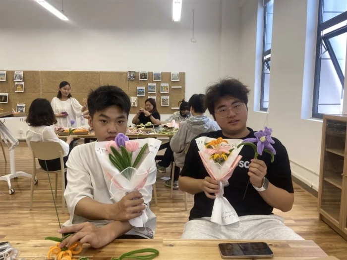 总之,自由创作环节不仅培养了学生的劳育和美育素养,更是一个情感表达与个性展示的机会,同学们通过花朵这一艺术媒介,展示了他们对他人、对世界的认知、感悟和感恩。