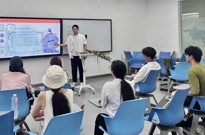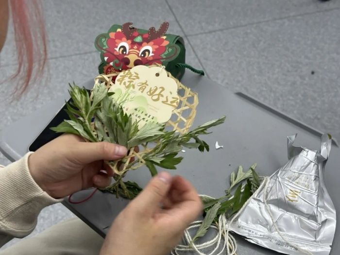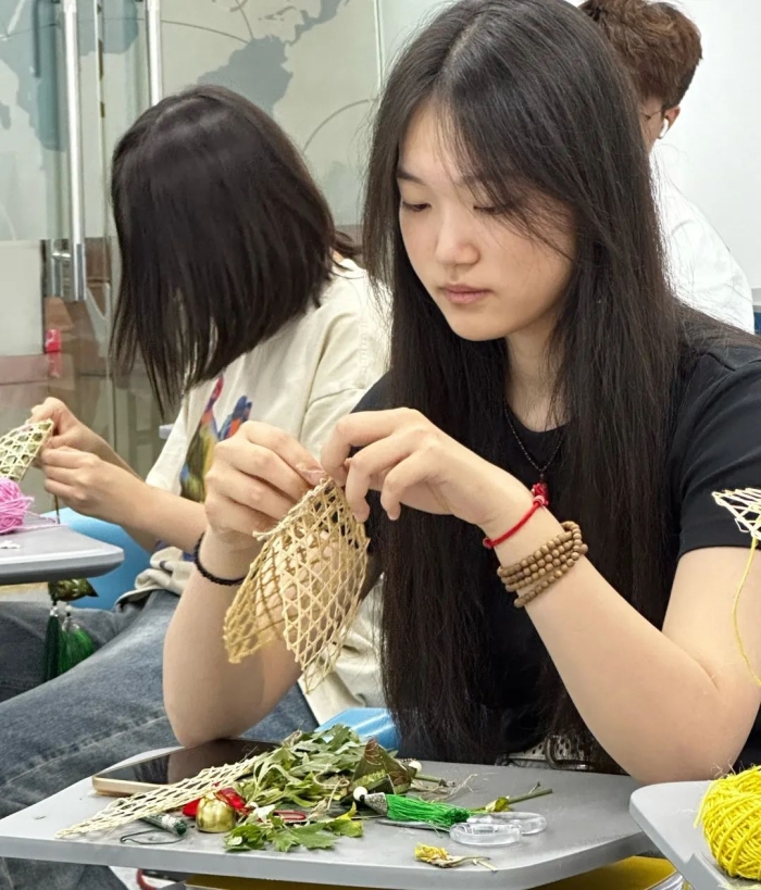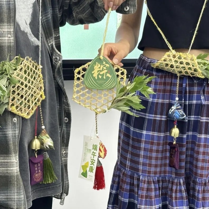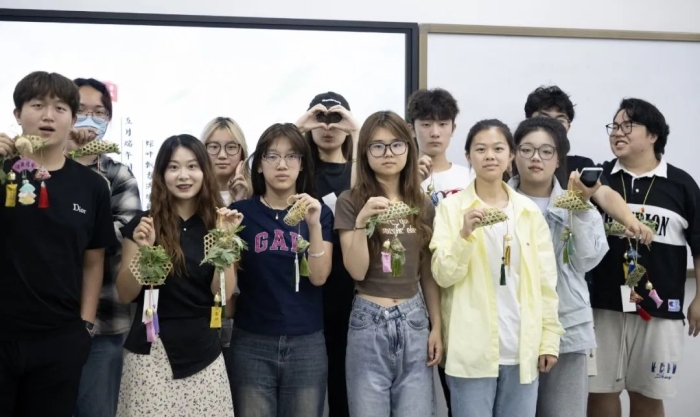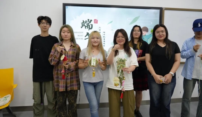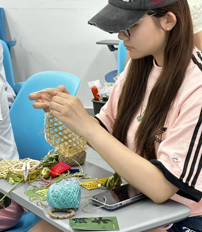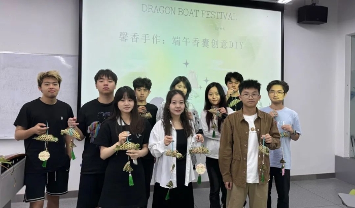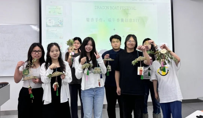各班级分为3至5人的小组,同学们相互协作,共同完成了香囊的制作。在老师的指导下,同学们用英语介绍了自己独特的设计理念和详细的制作过程。随后,经过设计构思、拍摄记录、视频剪辑、配乐添加以及字幕编辑,每个小组都以短视频的方式,向大家呈现了他们独特的作品和富有创意的构思。 结语 通过本次“馨香手作——端午香囊创意DIY活动”,同学们不仅提高了英语语言能力,更深刻理解了端午节的文化内涵和民族精神,增强了文化自信和爱国情感。师生们在体验传统手工艺的乐趣的同时,将专业知识与外语学习完美融合,展现了国际教育学院师生的风采。 我们期待未来有更多这样的活动,让更多人了解和喜爱中国传统文化,为传承和弘扬中华优秀传统文化贡献一份力量。