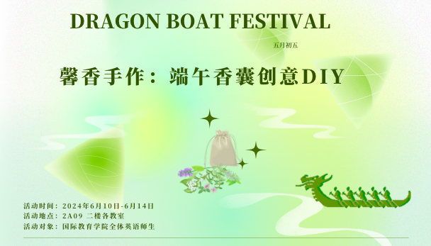 6月10日至6月14日,国际教育学院英语组开展了“馨香手作:端午香囊创意DIY”教学活动,本次活动旨在让国际教育学院全体英语师生通过亲身参与端午香囊制作及短视频拍摄剪辑,在感受中国传统文化的魅力的同时,培养大家的动手能力、创造力和团队协作精神。更重要的是,我们希望通过这次活动,让同学们学会如何用英语向世界传播中华传统文化。