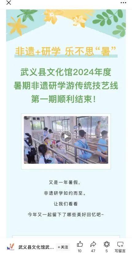 假期伊始,我便在“创青春”平台上报名参加了为期15天的“返家乡”实践活动,次日就在武义县文化馆报到,开启了实习之旅。
