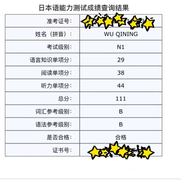 皆さん、こんにちは。我是吴启宁!在今年7月的日本语能力考考试中,我很幸运地取得了N1合格的成绩。在此,我想和大家分享一些我的学习及应考经验。