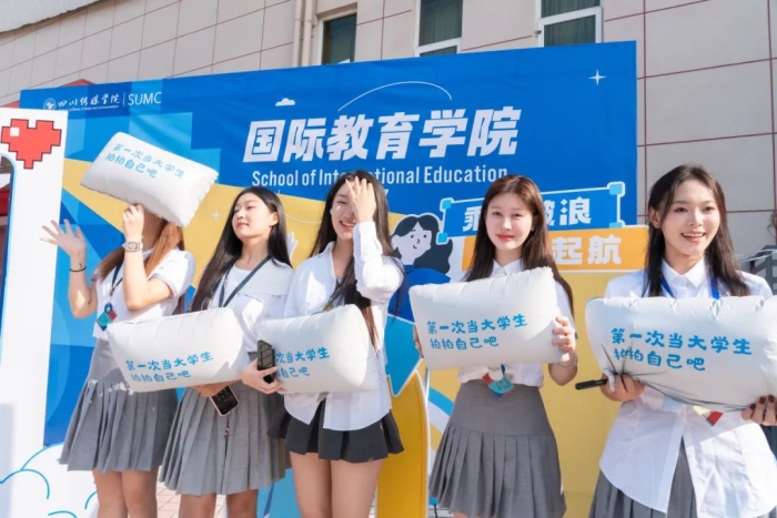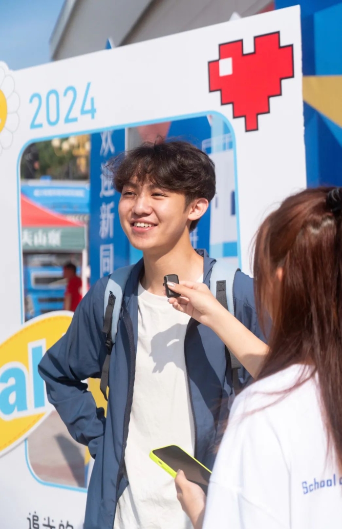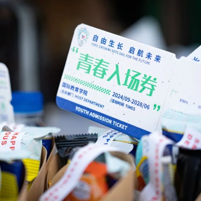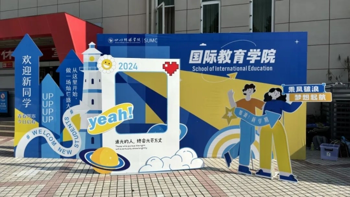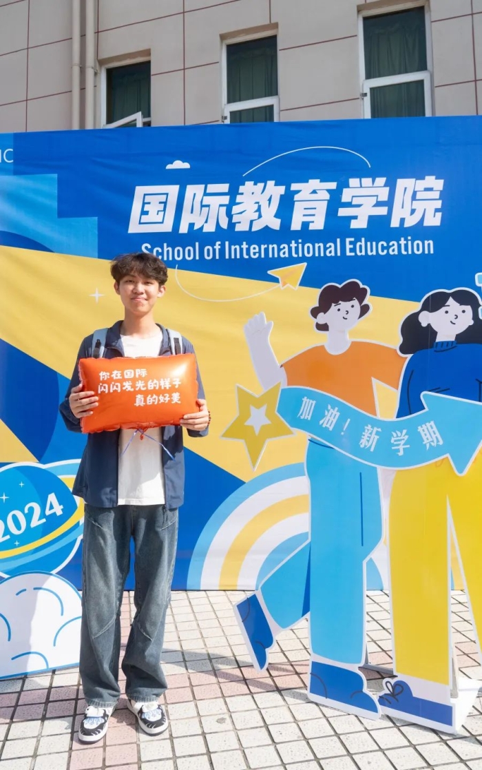 最引人注目的莫过于国际教育学院的专属打卡墙——灯塔,象征着指引与希望。新生们纷纷在此打卡留念,寓意着他们将乘风破浪,追光前行,光芒万丈。