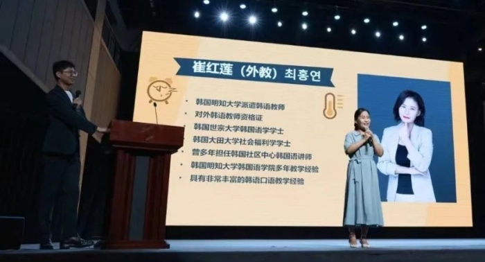 英语组李颖老师、日语组陈朗秋老师、韩语组姜楠老师依次介绍了各语言组的师资团队与教学构成。