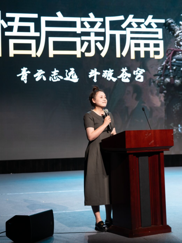 国际教育学院党总支书记董佳结合当下大热的国产游戏《黑神话:悟空》做出讲话,她提出同学们应像悟空那般,拥有探索未知的勇气和不屈不挠的斗志,不断突破自我,在知识的海洋中闯出一片新天地。