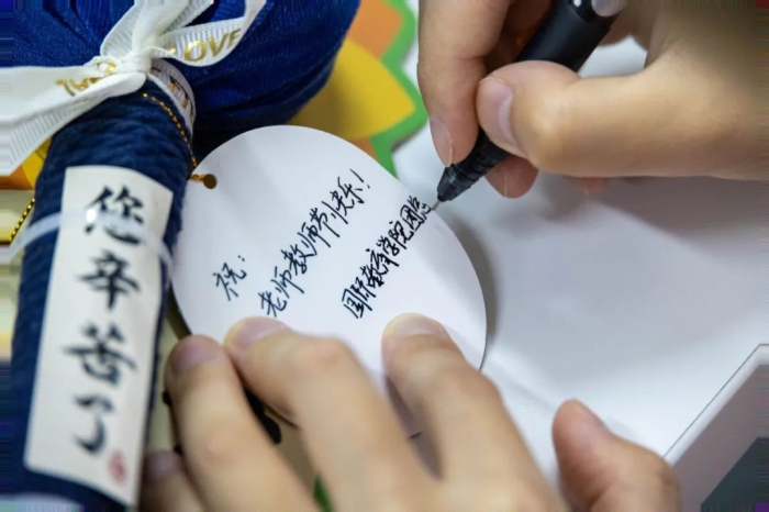为了表达这份难以言表的感激之情,国际教育学院团学的同学们,考虑到老师们长时间站立授课的辛劳,还别出心裁地精心制作了艾草锤和润喉糖作为礼物。艾草锤,采用天然艾草填充,轻轻敲打身体,既能缓解疲劳,又能促进血液循环;而润喉糖,则是保护老师的嗓子,让他们的声音永远清亮悦耳。这些贴心的礼物,不仅体现了学生们对老师的关心与爱护,更彰显他们对传统文化的传承与创新、国教院的同学还精心设计了小卡片,上面写满了对老师的感激与祝福,字里行间流露出的是最真挚的情感。