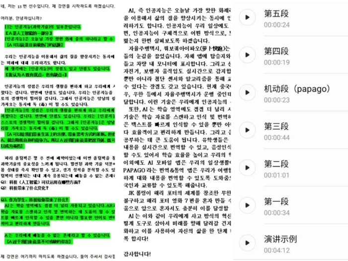 在本次大赛中,卢翰宇同学的演讲作品紧扣“科技”这一大主题,讲述了人工智能在生活中的应用。从无人驾驶汽车“萝卜快跑”的顺利落地,到学生日常使用的实时翻译软件“PAPAGO”,再到AR增强现实技术、语音识别、实时字幕、对话式人工智能,利用当下最热门的主题,完成了一次生动、高质量的科技外语演讲。